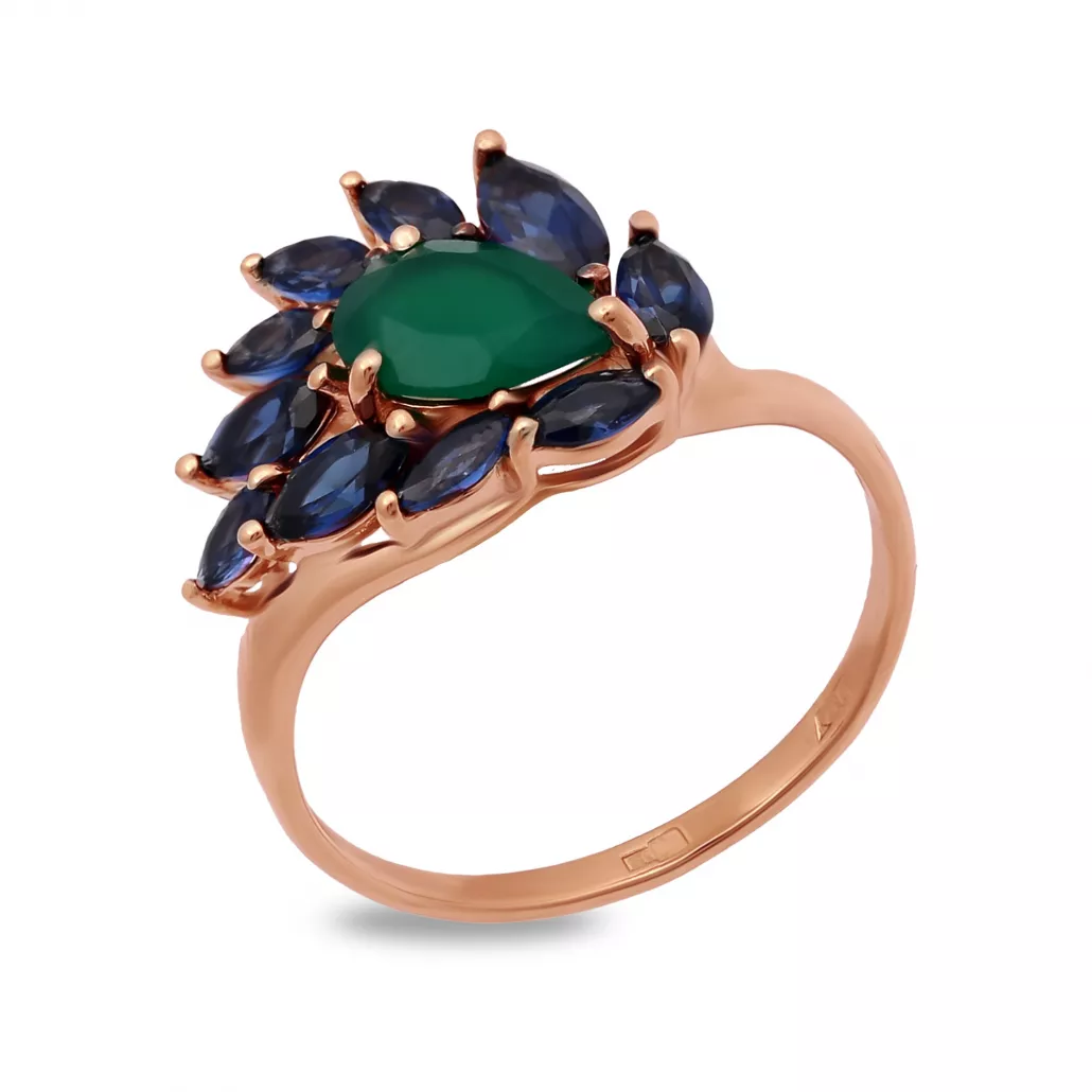 - Кольцо с агатом и сапфиром из золота