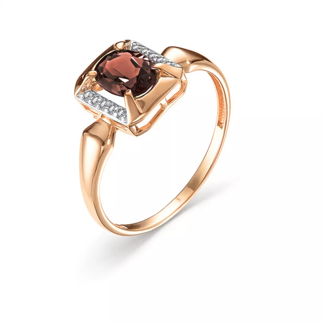 Кольцо с гранатом и фианитом из золота