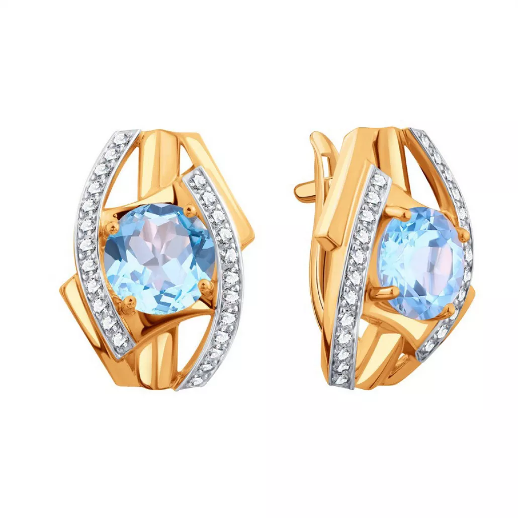 Серьги с топазом и фианитом из золота Артикул: Т14702Е291